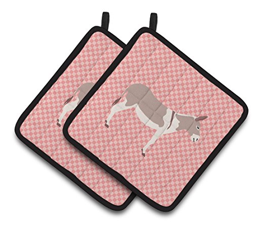 Caroline's Treasures BB7846PTHD Australian Teamster Donkey Pink Check Decorated Pot Holder, 7.5" x 7.5", Multicolor