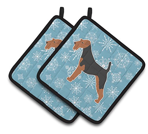 Caroline's Treasures Winter Snowflake Welsh Terrier Pair of Pot Holders BB3485PTHD, 7.5HX7.5W, Multicolor