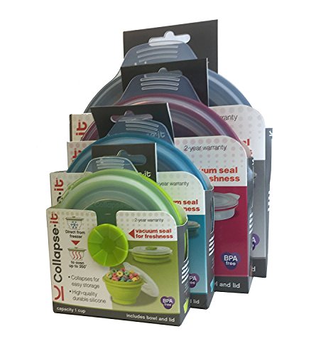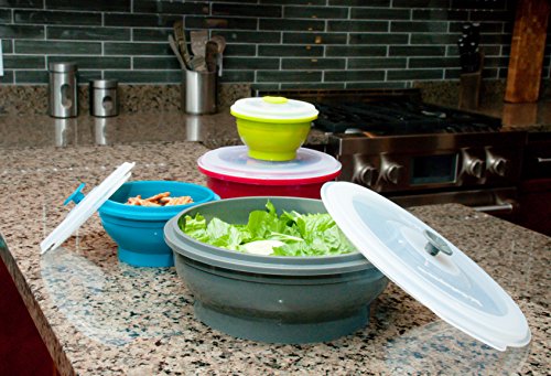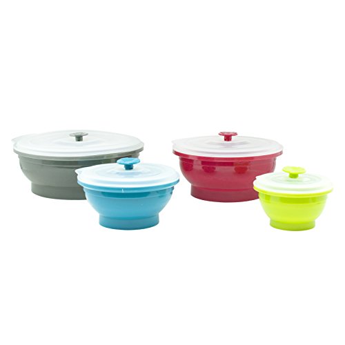 Collapse-it Silicone Food Storage Containers, 4-piece Bowl Set - 6 Cup, 4 Cup, 2 Cup, 1 Cup Size Capacity - Microwave and Oven Safe