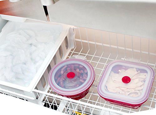 REPLACES ALL THE STORAGE containers in the kitchen with a single durable, oven-safe, microwave-safe, freezer-safe, vacuum sealed storage system - collapses to less than half its original size