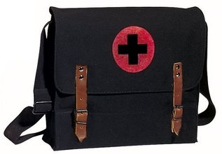 -. Feature : HW COTTON CANVAS / MEDICS CROSS SYMBOL / LARGE COMPARTMENT W/FLAPS & LEATHER BUCKLES / ADJUSTABLE SHOULDER STRAP / AVAILABLE IN OLIVE DRAB (8141) OR BLACK (8142)