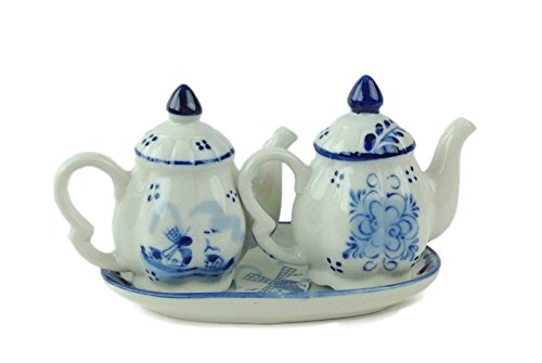 Essence of Europe Gifts Ceramic Blue & White Salt & Pepper Tea Pot Set