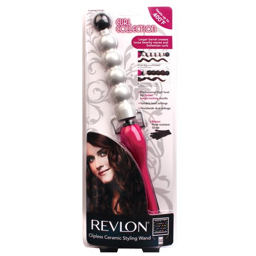 REVLON CURL COLLECTION, CLIPLESS XL BUBBLE CURLING WAND, PINK HANDLE