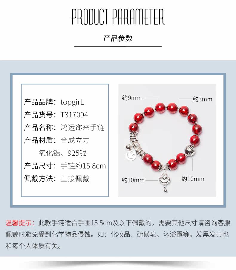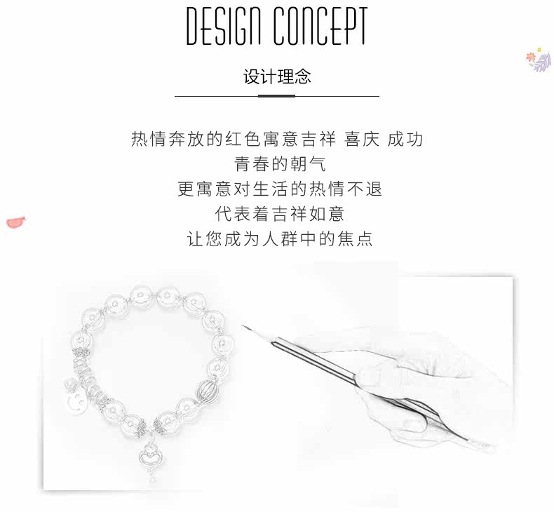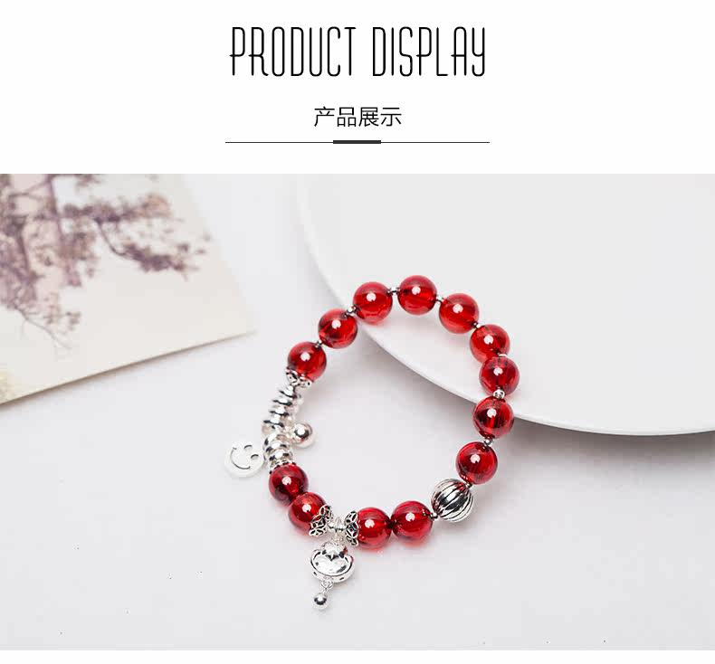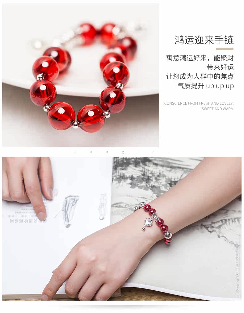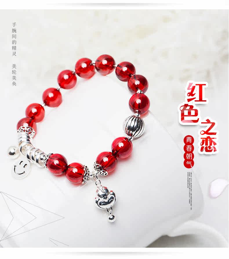 红刚玉水晶手链女笑脸吊坠生肖银饰品手串本命年礼物