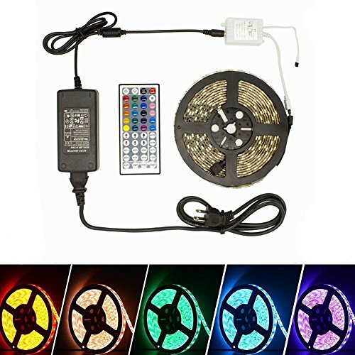 LED Strip Lights Kit, 5050 RGB LED Strip Lights Color Changing DC12V Power Supply Waterproof 16.4 Ft 300 Leds With 44key IR Remote Controller For Indoor Outdoor Holiday Decoration.
