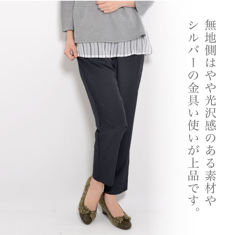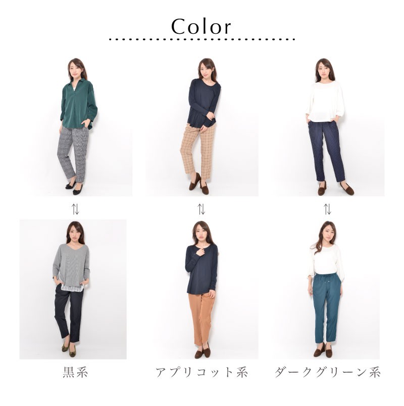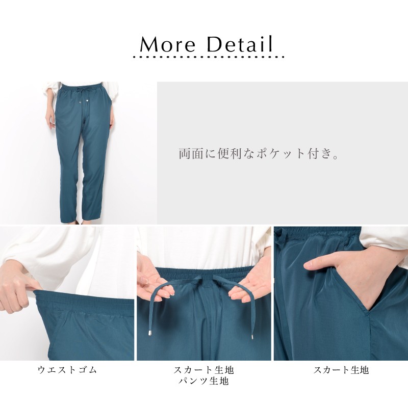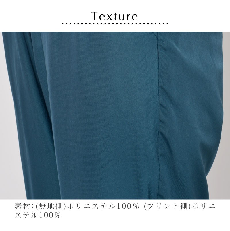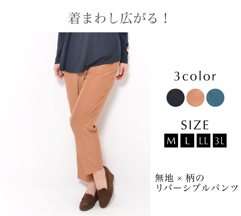 | 実寸 | 表記は全てcm [M] ウエスト(64-70) ヒップ100 ワタリ幅33 前股上丈24 股下丈68 裾幅16 [L] ウエスト(69-77) ヒップ106 ワタリ幅35 前股上丈24 股下丈68 裾幅16 [LL] ウエスト(77-85) ヒップ112 ワタリ幅37 前股上丈25 股下丈68 裾幅17 [3L] ウエスト(85-93) ヒップ118 ワタリ幅39 前股上丈25 股下丈68 裾幅17 ※商品により柄の出方が異なる場合があります。 ●ウエスト総ゴム ひも使い (前)左右ポケット |