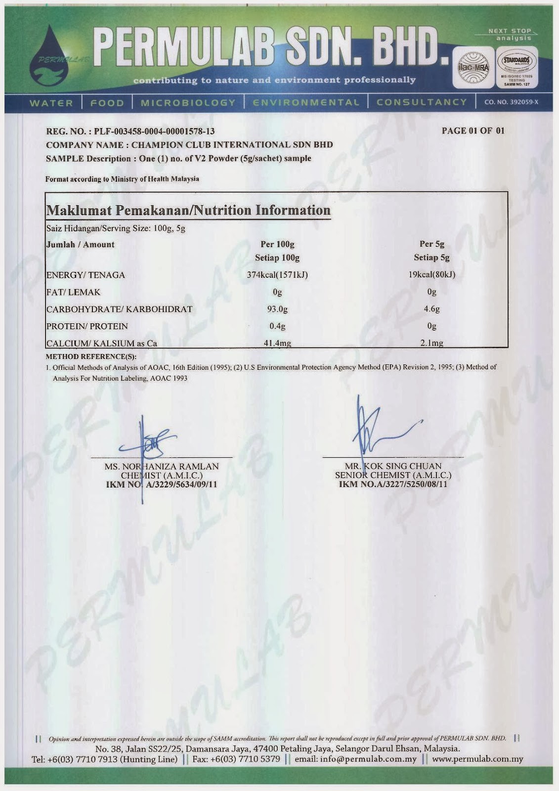 1.拥有东南亚最严格的新加坡卫生部HSA化验认证.