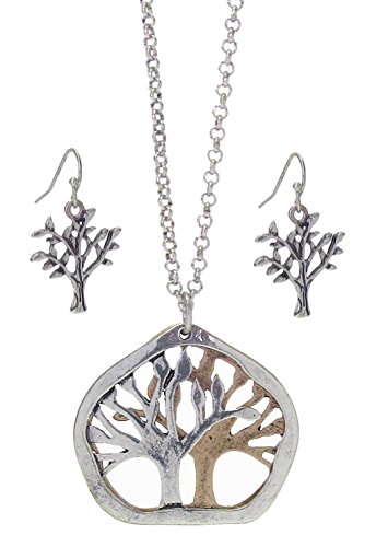 Double Tree of Life Pendant Necklace Earrings Set Wisdom Celtic