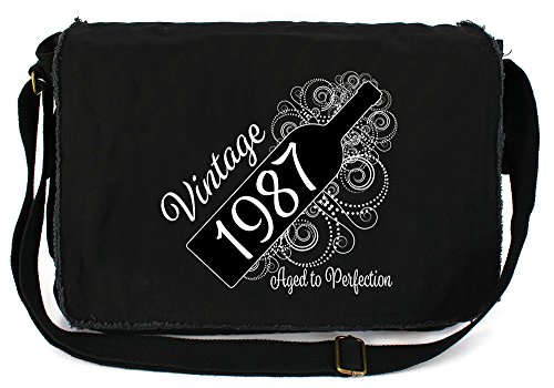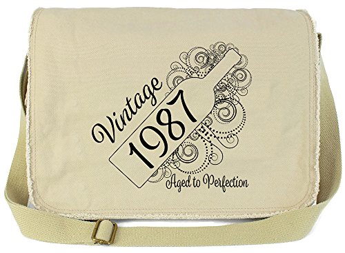 Studio : Tenacitee Publisher : Tenacitee Binding : Personal Computers Product Description Born in 1987 - Aged Like a Fine Wine Raw Edge Canvas Messenger Bag by Tenacitee. Express yourself! No boring bags here, this messenger bag is custom printed in our Oklahoma shop just for you. Made of 14oz 100% cotton canvas this bag is perfect for telling the world what you think while you're out and about town. We use the latest Direct to Garment printing technology for a vibrant and soft print with less wasted ink. The bag is machine washable, has several inside zippered pockets, an interior key leash hook, and a 2" wide adjustable shoulder strap. The bag measures approximately 16"x11.5"x4.75". 0