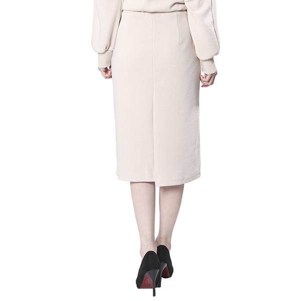 부드러운 울 혼방 소재의 뒷 지퍼 여밈으로 착용이 간편하며 밑단 중심 트임으로 활동성을 살린 아이템입니다.