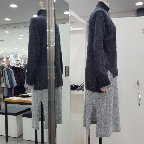 레이어드 하기좋은 원피형 니트양쪽 긴트임이있어 레깅스나 쫄바지 혹은 와이드팬츠랑 연출가능.