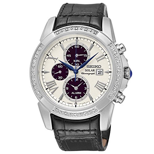 -. Title : Seiko Men's SSC311 Diamond-Accented Stainless Steel Watch with Black Leather Band