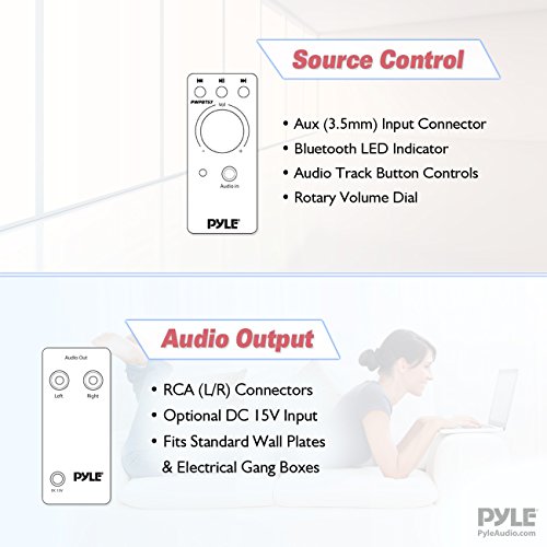 The Pyle PWPBT57 in-wall audio receiver adds convenient Bluetooth audio transmission and control where you need it. Mount the system in-wall for instant wireless music streaming with the ability to connect to your home theater. Quick and easy installation fits into standard size electrical/gang boxes and can be installed in virtually any wall in your home or office. Features include rotary control knob with touch button controls, aux (3.5mm) audio input for connecting external devices and RCA (L/R) outputs for speaker connection. Enjoy versatile and wireless audio control with the Pyle PWPBT57 Bluetooth In-Wall Audio Control System.Feature