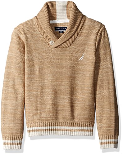 Nautica Big Boys Shawl Collar 'Mainstay' Marl Sweater With Toggle Closure, Oat Heather, Large