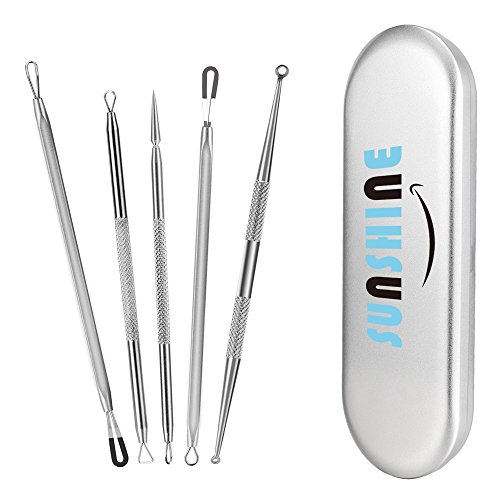 Sunshine Blackhead & Acne Remover Kit, Pimple Comedone Extractor Tool, Whitehead Popping, Zit Removing for Risk Free Nose Face Skin with Metal Case