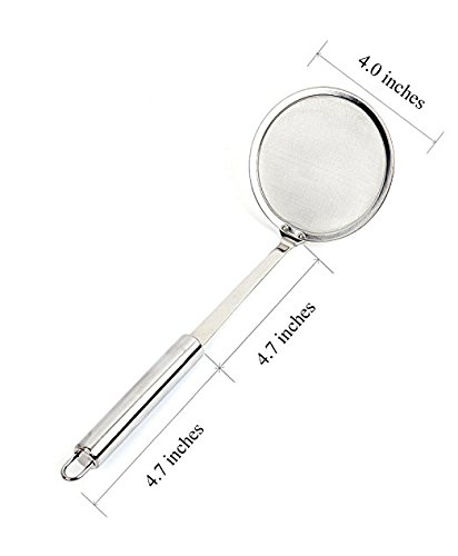 Studio : RETON Publisher : RETON Product Description Features: -Material: ?Made from 304 18/8 food grade stainless steel, durable, sturdy and won't break or warp easily, totally harmless to health even using in hot soup or frying food, no harmful substances spread out. -?Color : Polished Silver Package: includes 2pc Strainers -Size:?23 cm / 9 inches length of the handle and 10 cm / 4 inches in diameter of the mesh, this stainless steel grease skimmer is not big but perfect suitable for most kitchen pots and pans.?the mesh hole: 0.2mm*0.2mm -High quality mesh skimmer, the fine mesh and the handle are assembled firmly and tightly, the mesh is fine enough to help you to filter the tiny floating fat, oil residue, soup foam and scum. -Skims the fatty oil off the tops of stocks and broths while you are cooking. Very useful for healthy soup-making and keep you slim and healthy.
