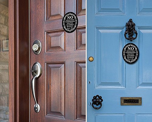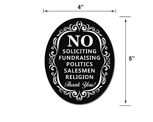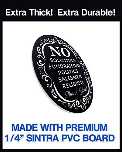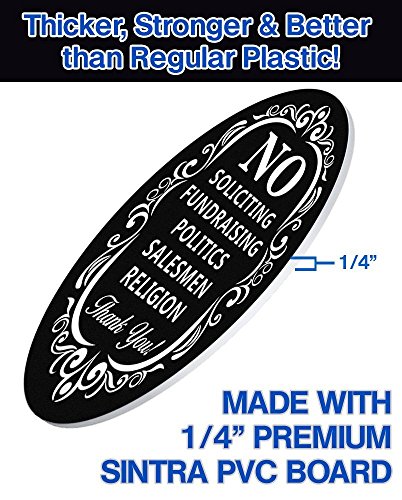 No Soliciting Sign for Home and Business | Stylish Laser Cut Oval 5" X 4" Heavy Duty Sintra PVC | Outdoor Indoor Use | with Door Knockers and Bell (Sintra PVC Plastic)