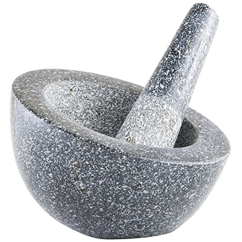 -. Feature : The easy way to crush and grind herbs, spices and much more! / Create homemade pastes, sauces, dressings, pestos, guacamole, dips and seasonings / Made from solid 100% natural granite - extremely strong and built to last / Large 6.5" (outer) diameter mortar with angled design for simpler grinding and combining. / Long 6" pestle - comfortable and easy to use