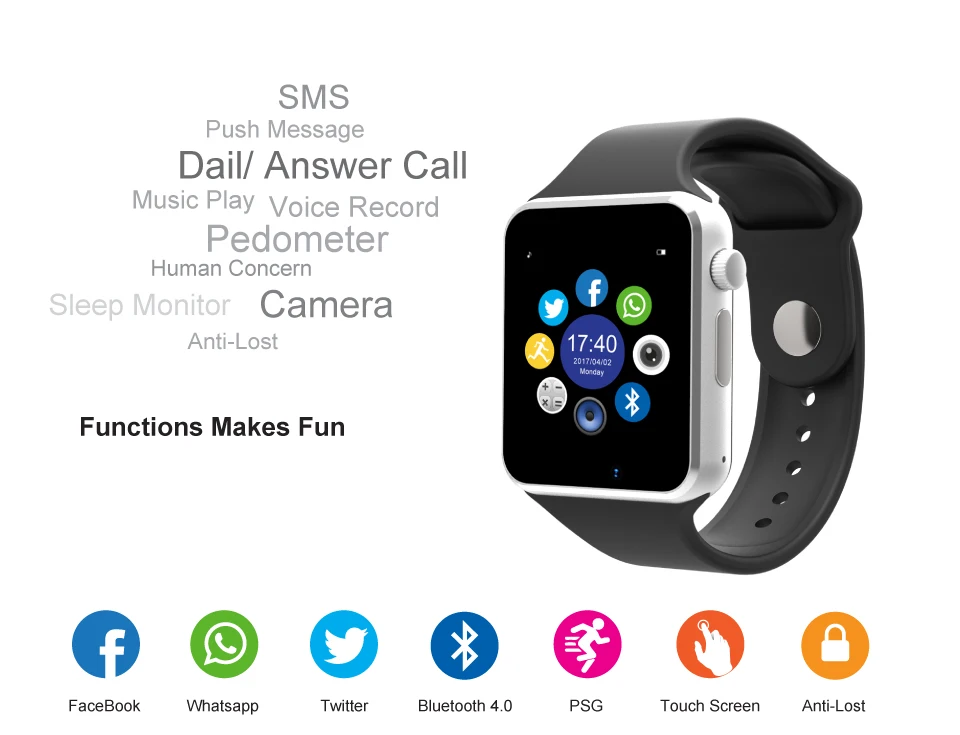 Function:Week,Dial Call,Message Reminder,Answer Call,Passometer,Alarm Clock,Countdown,Call Reminder,Calculators,Calendar,Remote Control,Sleep Tracker,Push Message