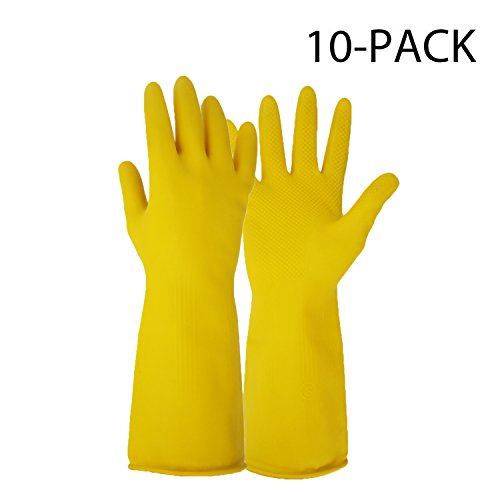 Vgo Glove Reusable Household Cleaning Dishwashing Kitchen Glove, Long Sleeve Durable Latex Working, Painting, Gardening Gloves(10 Pairs, Color Yellow, Size 8/M and 9/L)