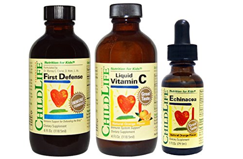 ChildsLife Immune Set comes with Vitamin C, First Defense, and Echinacea. These supplements have a great tasting liquid to ensure ease of use for children of all ages. The immune set supports healthy immune functions for developing infants and children. Daily use may help to maintain and improve overall health for supporting natural immune responses and defending the body. This 3 pack is for children of all ages and can be used either short or long term to increase natural defense responsesFeature