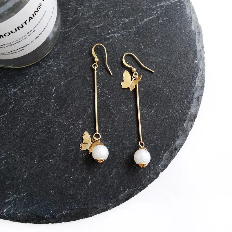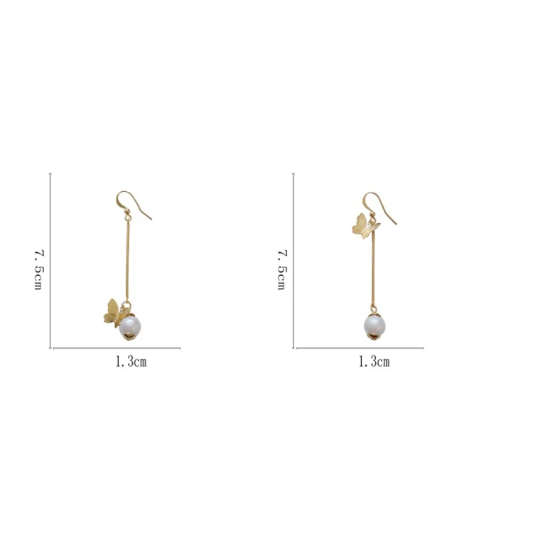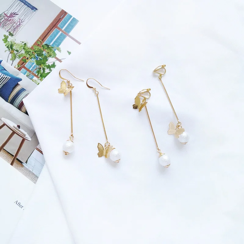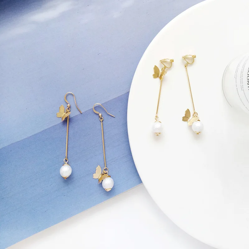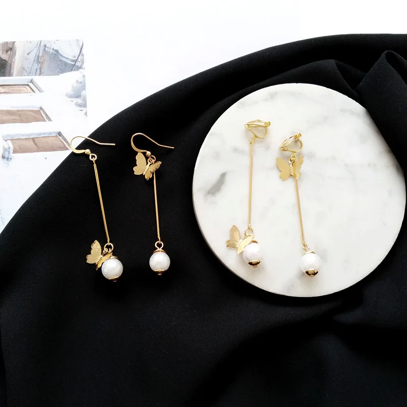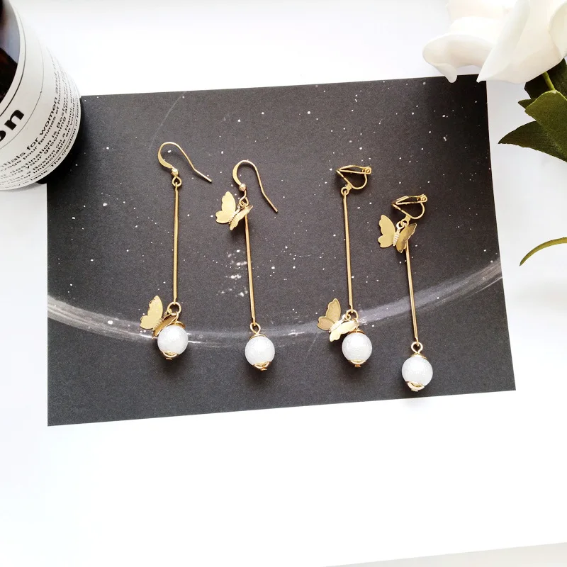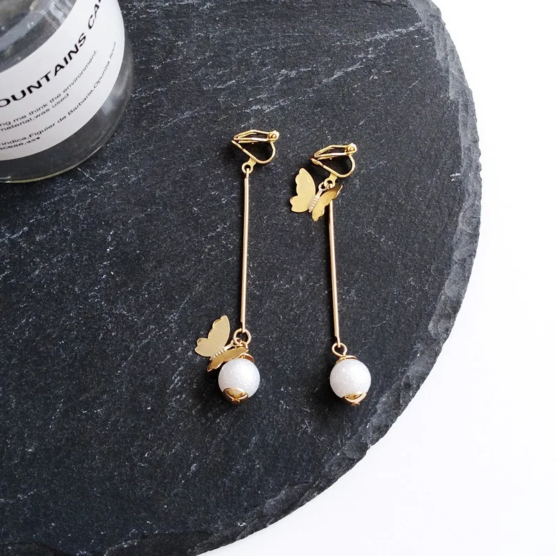 Pedant shape:Metal Long Butterfly Clip Earrings with Pearl Simulated