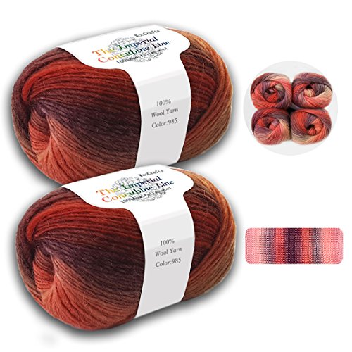 Gradient Rainbow Soft Wool Yarn Self-striping Yarn for Crochet Knit,Color: Maple Leaf (2 Skeins)