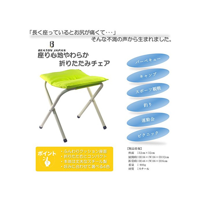 원본상품명: 【クッションだから寒さに?い】BEATON JAPAN 座り心地やわらか 折りたたみ椅子 アウトドア クッション チェア ?量 コンパクト (選べる4色)