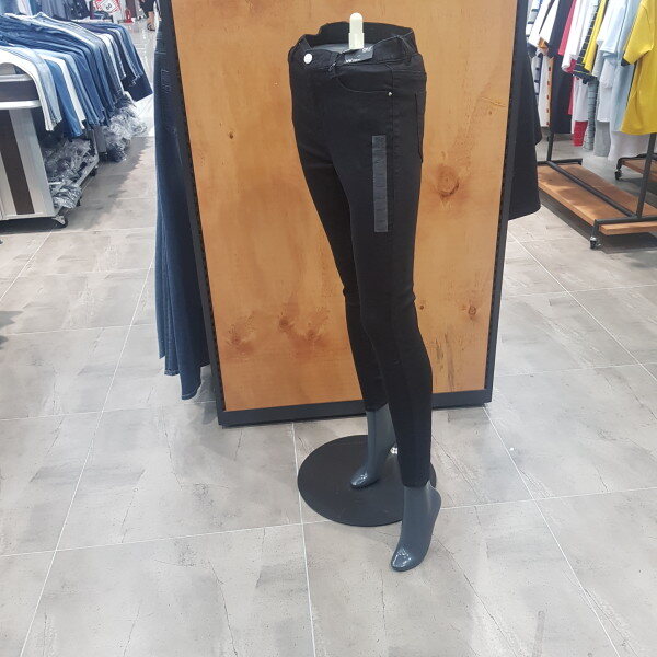 블략 로우 트윌 데님 원단의 미드라이즈 온부 스키니. 허리 뒤쪽에 밴드를 더한 스타일로 허리부분을 탄탄하게 잡아주어 깔끔한 피팅감이 좋은 제품. 다양한 상의와 잘 어울리는 스테디 셀러이자 데일리 아이템
