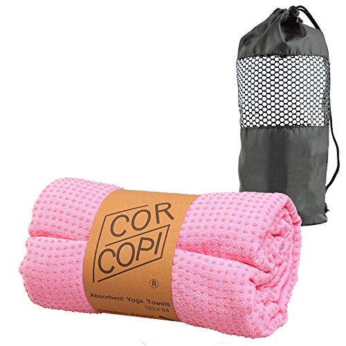 Corcopi Yoga Towel new color!! Cherry Pink Yoga rug comfort excellent soft touch microfiber rug absorbent hot-water quick-drying lightweight mesh bags
