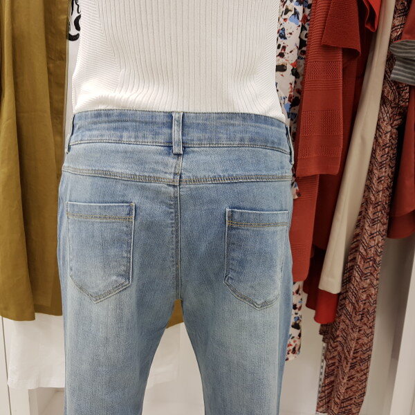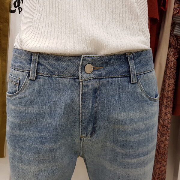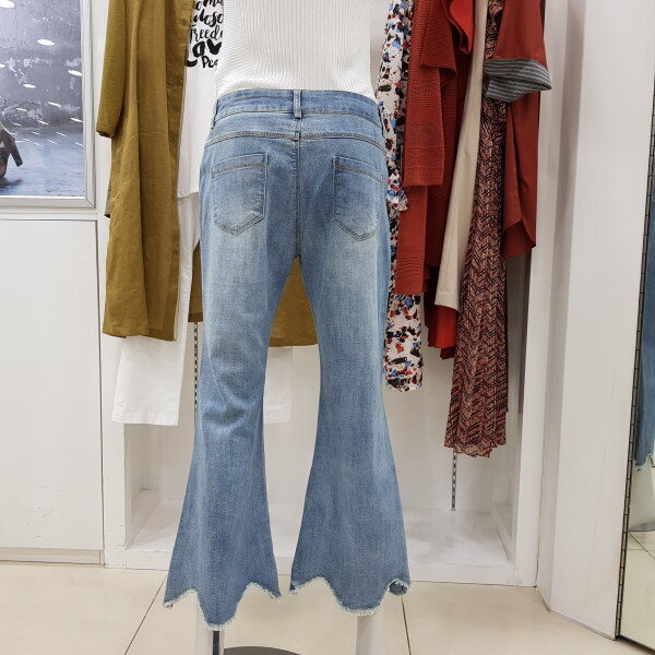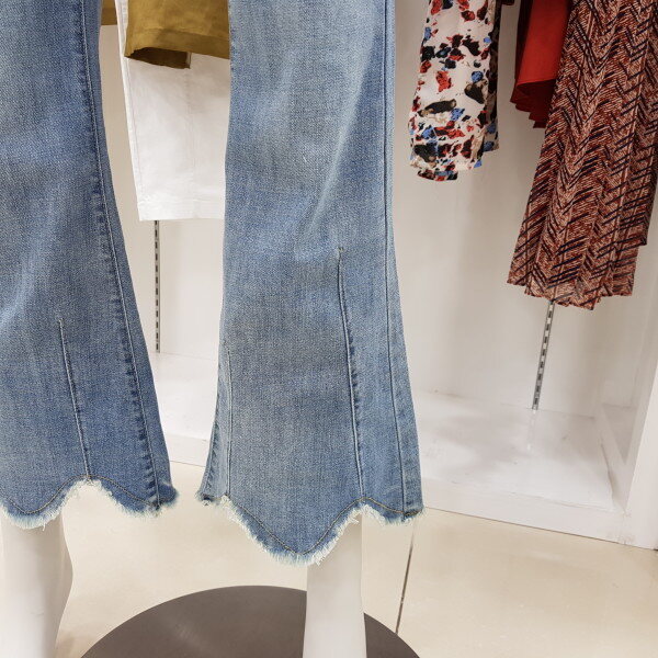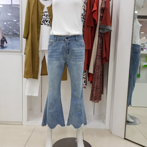 캐주얼한 물결 밑단 컷팅 데님팬츠로 러블리한 스타일입니다