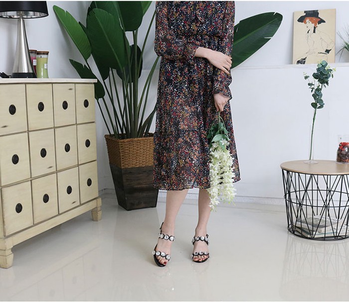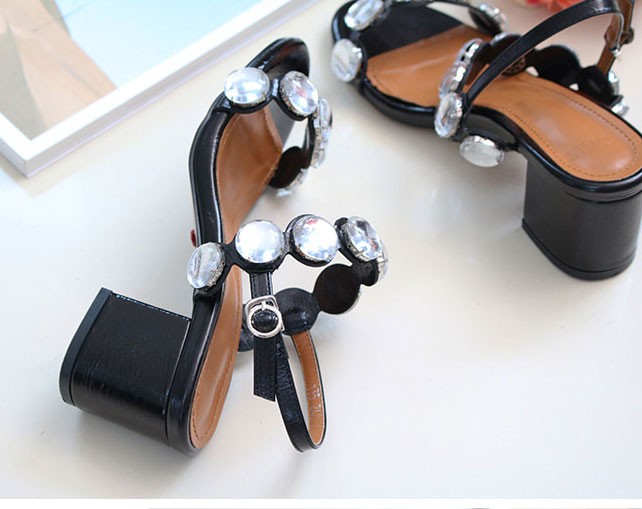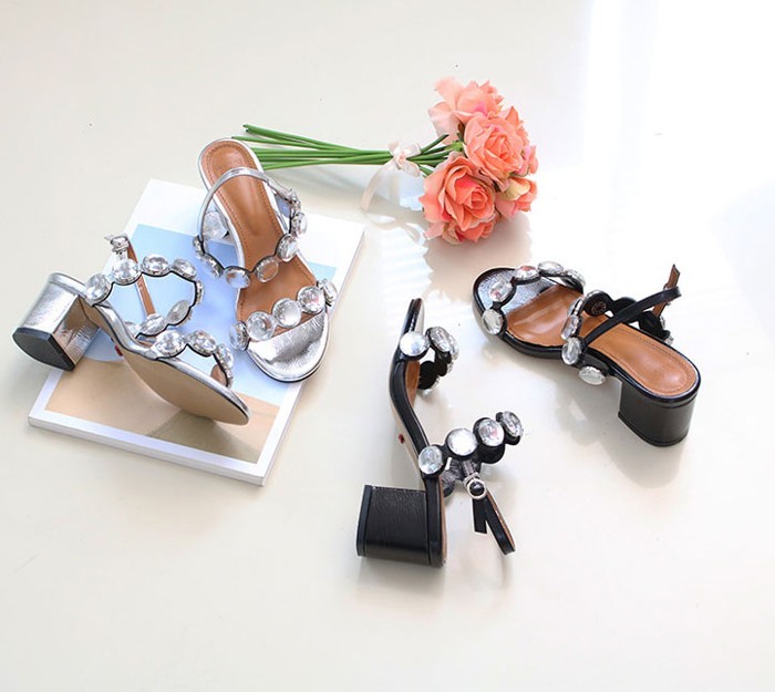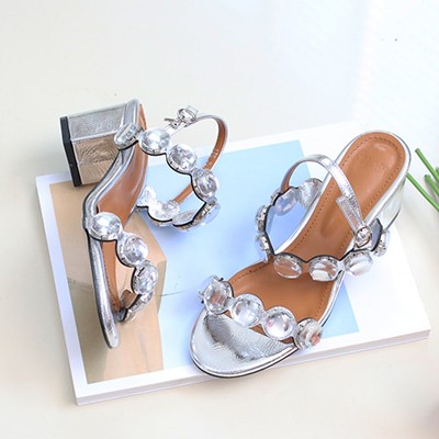 商品名:サンダル レディース ビジュー 太ヒール チャンキーヒール 2017 秋冬 ファッション 靴 婦人靴