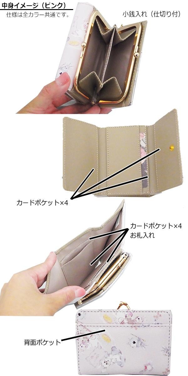 | 可愛いうさぎプリントのがま口のお財布です。コンパクトサイズで裏面には便利なフリーポケット付!!淡いカラーで大人女子にもぴったり♪ |