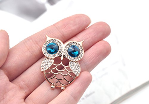 -. Feature : This is a cute owl brooch with clear crystal rhinestone and turquoise green big eyes / Material: Zinc Alloy(shining gold tone metal base),crystal rhinestone / Size:approx 2.5cm wide X 3cm tall(1.0inch=2.54cm) / Brooch arrives in a complimentary gift box / VERSATILE JEWELRY - Great for casual wear, cute to wear on a scarf