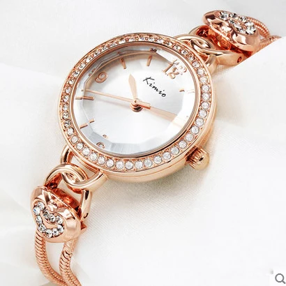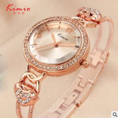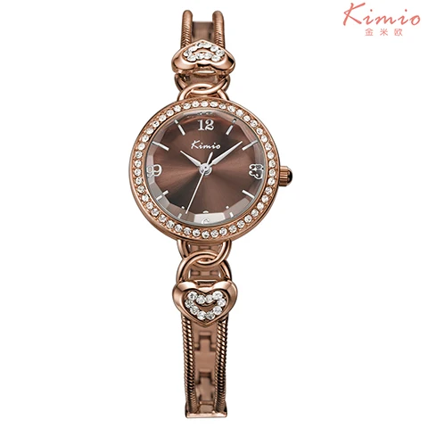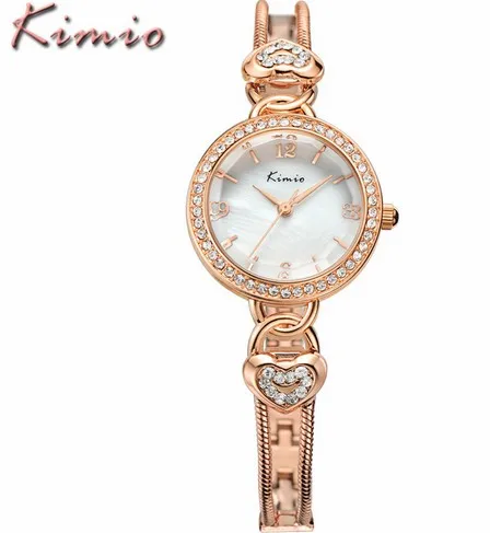 | [해외] KIMIO 사랑 심장 여성 팔찌 시계 체인 손목 시계 패션 여성 시계 캐주얼 골드 쿼츠 시계 Relogio 여성 시계 |