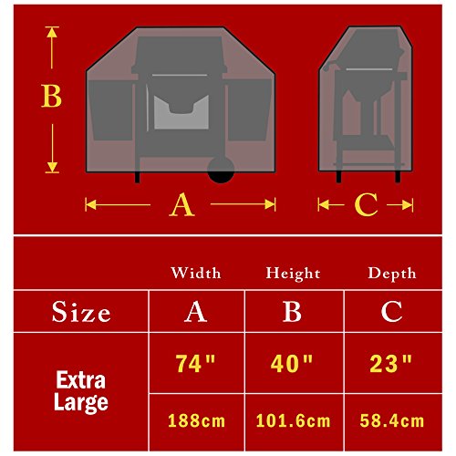 -. Binding : Lawn & Patio -. Brand : Montana Grilling Gear -. Color : Grey -. EAN : 0835058009848 -. Feature : Made of heavy-duty vinyl/polyester material / Mesh ventilation reduces damaging condensation / 100% Weatherproof material / UV protected to prevent premature fading / Reverses from grey to black -. Label : Villa Olympic Inc. -. Manufacturer : Villa Olympic Inc. -. Model : REV-74 -. MPN : REV-74 -. PackageQuantity : 1 -. PartNumber : REV-74 -. ProductGroup : Lawn & Patio -. ProductTypeName : OUTDOOR_LIVING -. Publisher : Villa Olympic Inc. -. Size : Extra Large -. Studio : Villa Olympic Inc. -. Title : Montana Grilling Gear REV-74 Gear Classic Series Reversible BBQ Grill Cover, 74-Inch -. UPC : 835058098484 -. Warranty : This product is warranted against defects in material and workmanship subject to the normal and reasonable use (by the consumer-purchaser) of the product, for a period of 1 year commencing on the date of purchase.