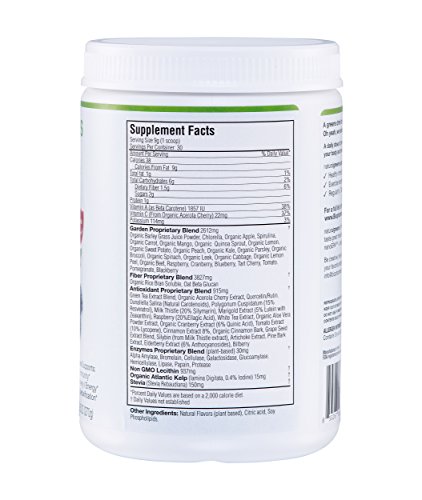 Natural Strawberry Flavor. Only 50 calories per scoop. The antioxidant power of 8 servings of fruits and vegetables from 55 different ingredients. The easiest way to get your dark, leafy greens to be healthy and stay healthy. This green powder supplement is truly a powerhouse of nutrition and wellness made easy