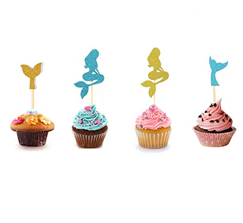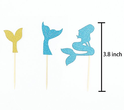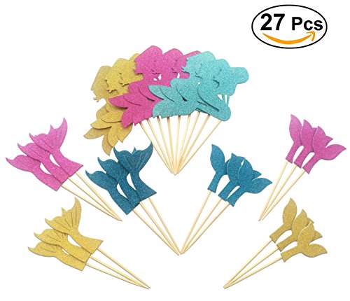 27pcs Glitter Mermaid Theme Cupcake Toppers Cake Decoration Baby Shower Birthday Party Favors, Including Mermaid, Fishtail