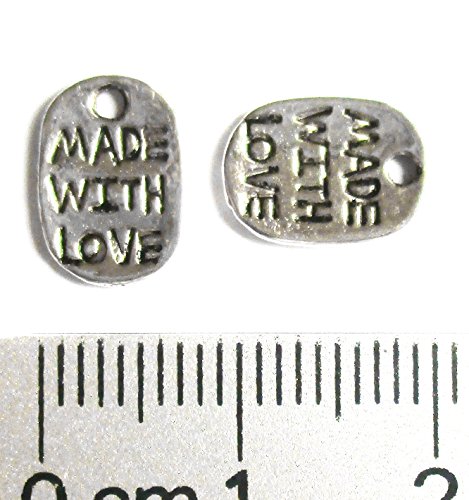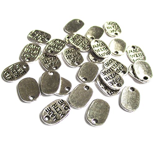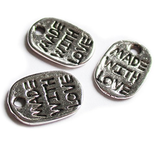 Heather's cf 216 Pcs Silver Tone Made with Love Elliptical rectangle Beads DIY Charm Pendants 11X8mm