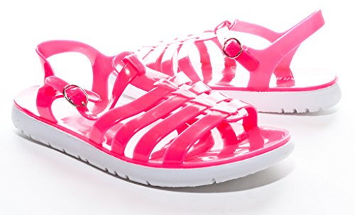 Bamboo Women's Jelly Caged Gladiator Jelly Flat Sandal