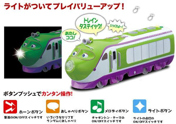 | 手押しで遊べるサウンドチャガーシリーズです。ココの豊富なボイスと、チャギントンのテーマソングが楽しい♪ホーン音とライト点灯機能も付いて、さらに遊びに幅が広がります。ホーン音、おしゃべりボイス、テーマソング、ライトの点灯はボタン操作でコントロール可能です。 |