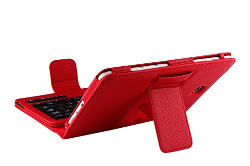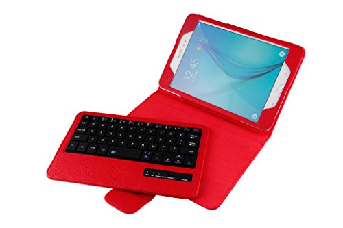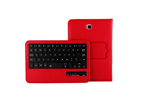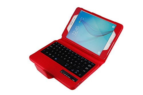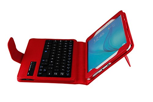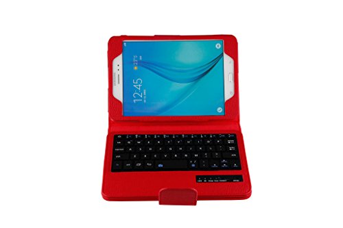 Title : Detachable Bluetooth Keyboard Case for Samsung Galaxy Tab A 8.0 inch T350 Tablet - Generic PU Leather Folio Style Flip Cover with Bluetooth Wireless QWERTY Layout and Kickstand/Stand - Colour Red