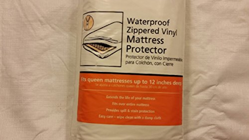 -. Feature : Queen mattress protector protects against spills and stains / Size: 60" x 80" x 12" QUEEN / 100% vinyl / Fits mattresses up to 12" deep