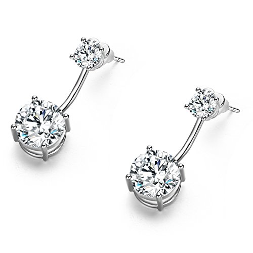 -. Title : Platinum-Plated Front Back 2 in 1 Cubic Zirconia Stud and Ear Jacket Earrings(8.3 cttw)
