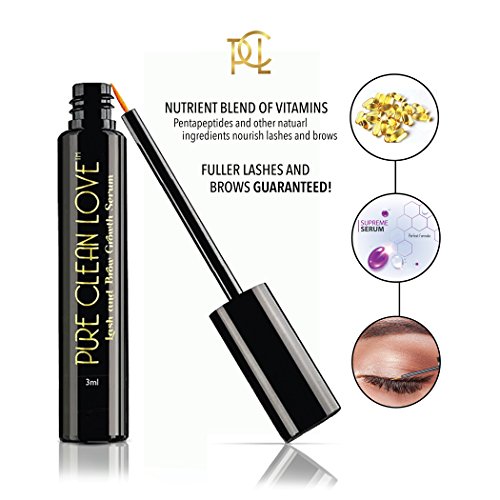 -. Feature : SPECIAL FORMULA - Pure Clean Love Pure Lash Growth Serum Enhancer is formulated with a combination of a hydro plant-specialized peptide and hydrolyzed keratin to stimulate keratin production in the lash line, which will repair damage and promote new lash growth. / FOR THIN BROWS AND FALLING LASHES -This serum is suitable for eyelashes or eyebrows that are thinning due to stress, age, or medical treatments. The serum also works well on damaged or broken eyelashes and bald spots. / INCREASED LASH LENGTH - This 3 ml. eyelash and eyebrow serum contains an exclusive, botanically derived compound that penetrates and enriches the hair follicles. This significantly stimulates keratin genes for fuller, longer, and thicker eyelashes and eyebrows. / SAFE AND GENTLE INGREDIENTS - This Pure Lash Growth Serum Enhancer is made with natural ingredients. It is certified 100% dairy, wheat, casein, paraben, sulphate, and gluten free, and it causes no skin irritation or allergies. It is not tested on animals. / EASY TO APPLY - Apply a thin layer of this product to the eyelashes above the skin. Be sure to let the serum dry before using makeup. For best results, use this product once a day for at least 60 days. This eyelash and eyebrow enhancer will conveniently fit into your purse or even your pocket.