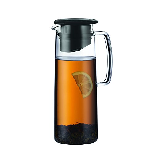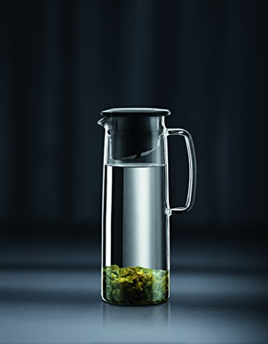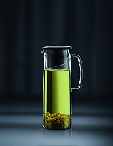 Cold brew green tea or other infused beverages directly in this award winning product; Filter system in lid prevents sediment from entering your cup;Jug is made of ultra-light borosilicate glass and does not get cloudy in the dishwasher, even after repeated use;The removable lid is made of plastic with a silicone gasket and an integrated, finely meshed plastic filter;Dishwasher safe;Made of Borosilicate Glass