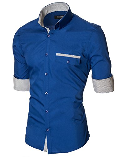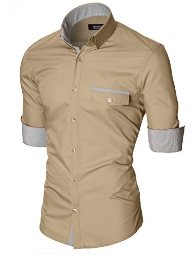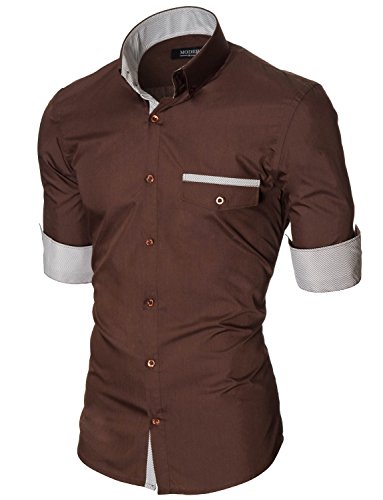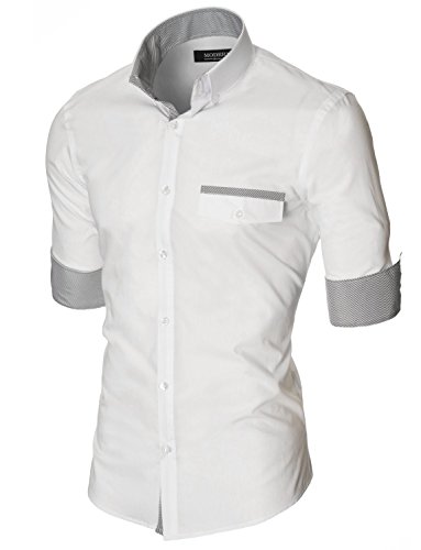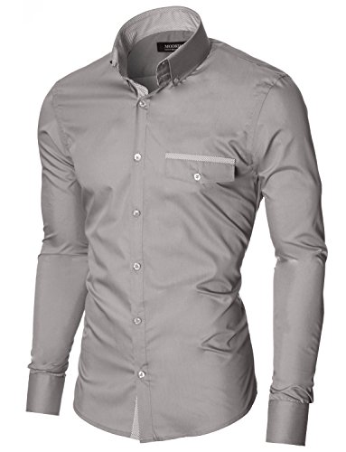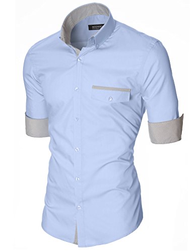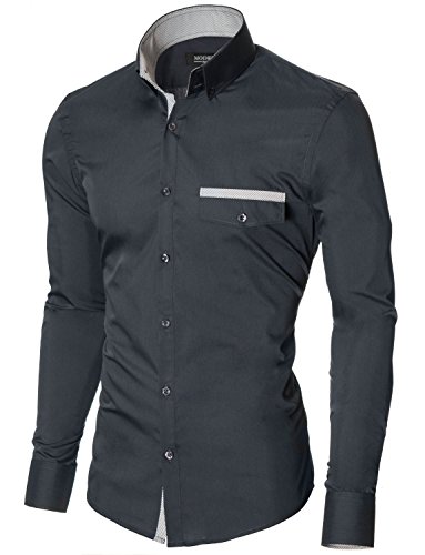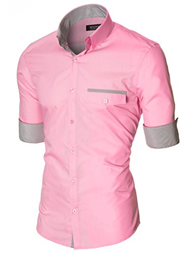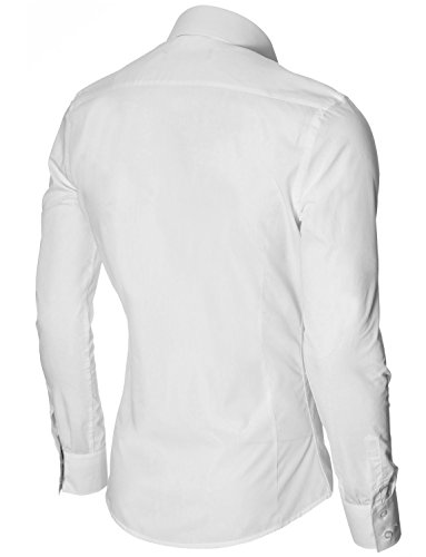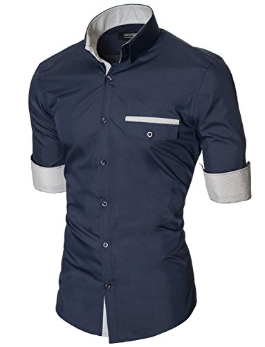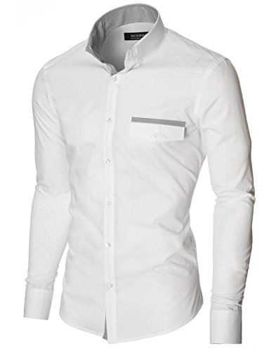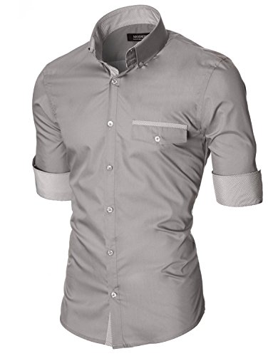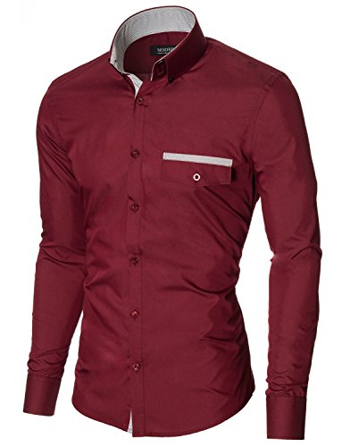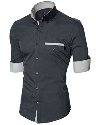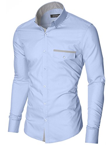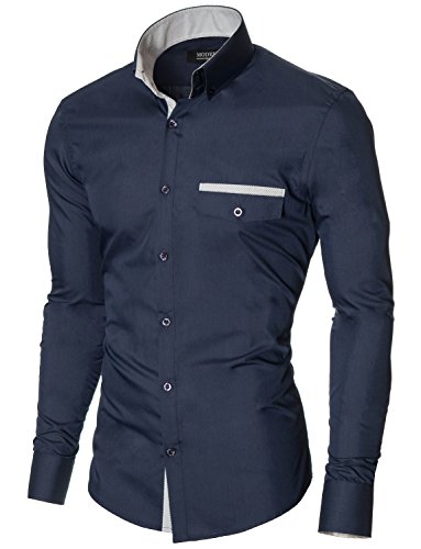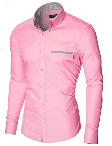 Das Baumwollmischung Gewebe macht dieses Slim Fit Hemd Herren bequem, wenn Sie tragen; Leicht zu bugeln; Trockenreinigung, Waschmaschine oder Kaltwasser Handwasche werden empfohlen