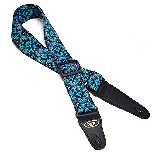 Art Attack Kaleidoscope Blue Tribal Pattern Flower Floral Music Electric Acoustic Ukulele Bass Guitar Strap