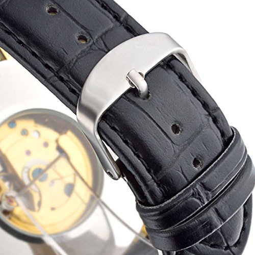 -. Feature : High quality automatic self wind movement (need to keep it wound), battery change needless / Black hight quality leather with golden case, suitable for working environment also casual occasion / Skeleton dial shape as crown of the fighters, Luminous Hands Analog Display / Suitable for social, business, outdoor sports, casual, work and other occasions. Wearing different styles watches on different occasions is just like choosing clothes for different purposes, which shows your taste. Ideal gift for your men/ boys/ gentlemen friends. / A perfect present for thanks giving day