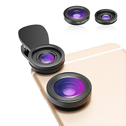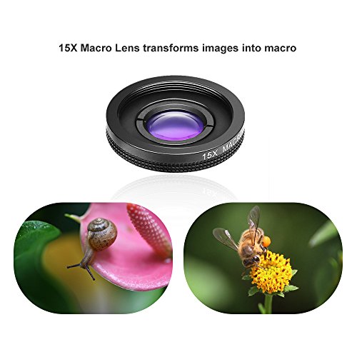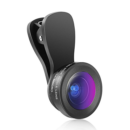 Wisdomcreate 2 in 1 Clip-on HD Cell Phone Camera Lens Kit with 0.4X-0.6X Wide Angle Lens + 15X Macro Lens for iPhone, Samsung and Most Smartphones and Tablets